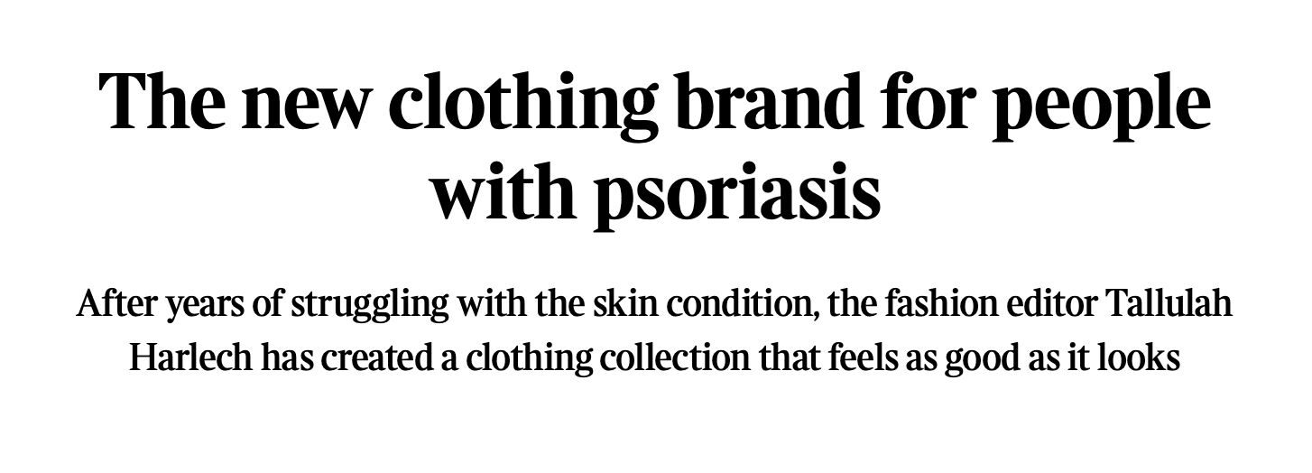 Jessica Salter had interviewed the stylist, Tallulah Harlech, about her new clothing collection - but this wasn’t just another celebrity fashion launch (there seems to be a new one every week). It was born out of something very personal: her struggle with psoriasis.