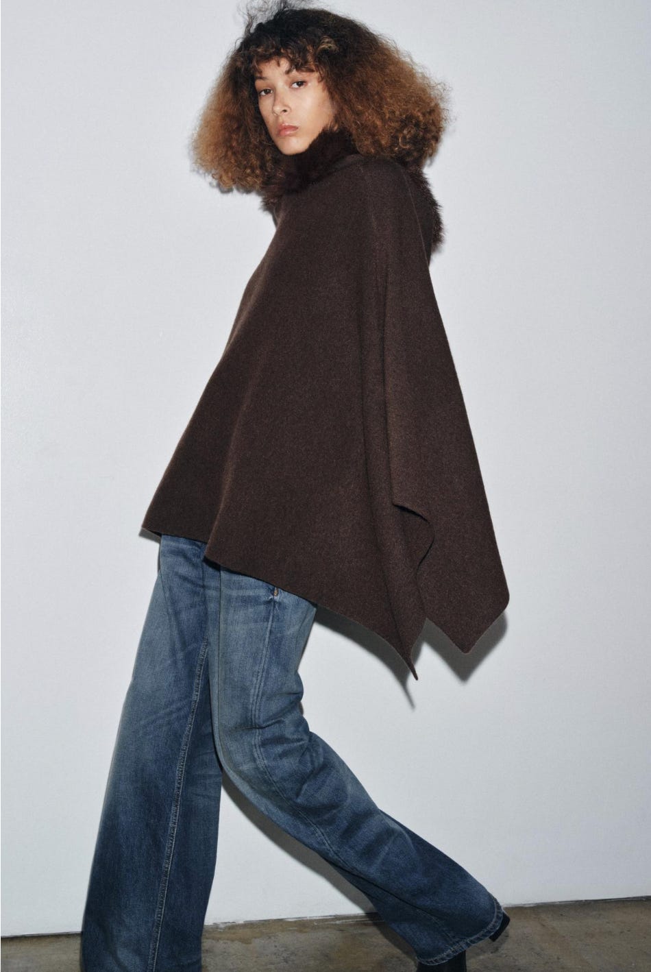 Back to fur, sorry. I really want a cape jacket. Specifically a cape jacket with a fur lining. They look so chic, warm, stylish, and they feel like a walking blanket without looking like you’re wearing a walking blanket. This ZARA number caught my eye - I love the chocolate-brown colourway, especially paired with denim jeans and my favourite heeled boots…chefs kiss.